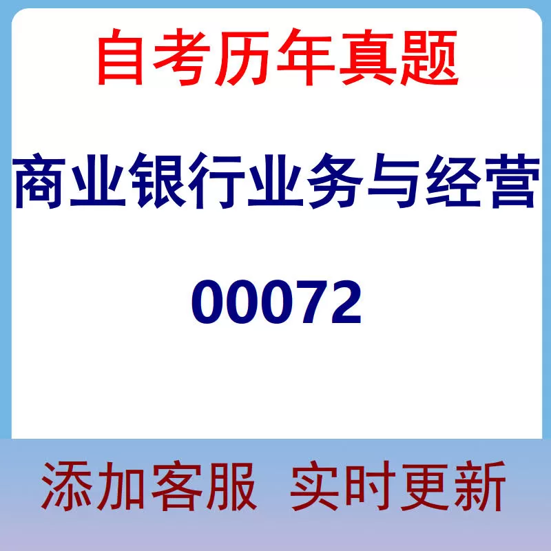 全国卷:【历年真题】2007年4月00072商业银行业务与经营自考试卷(含答案)【历年真题】2007年7月00072商业...