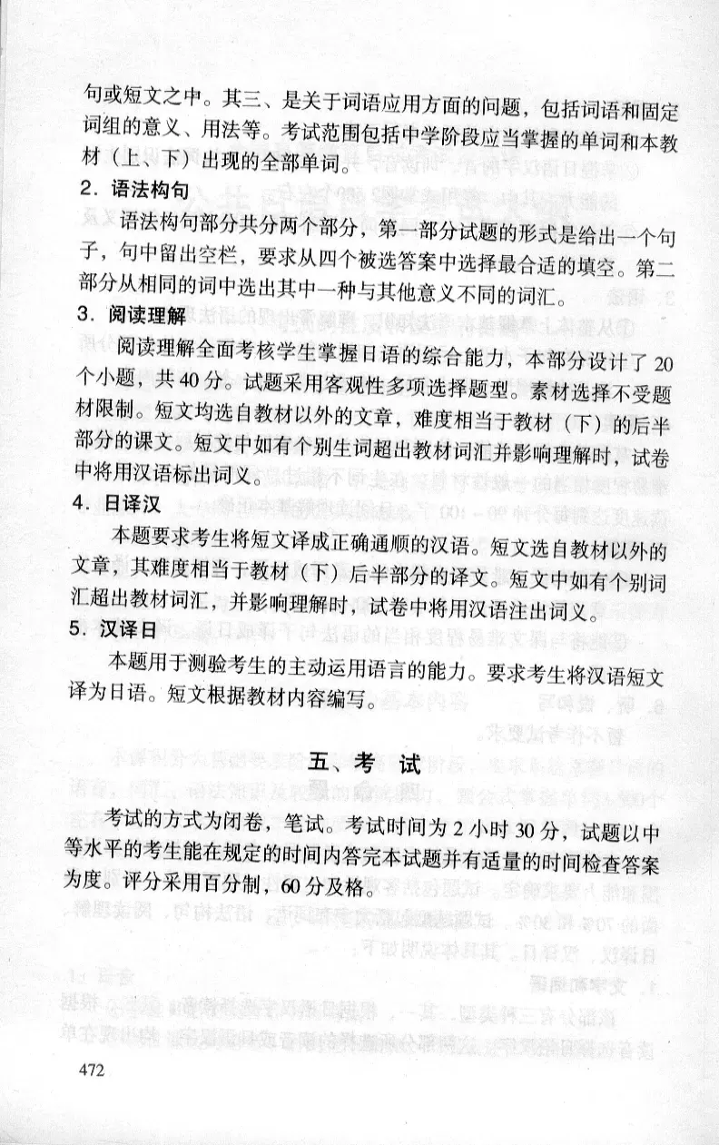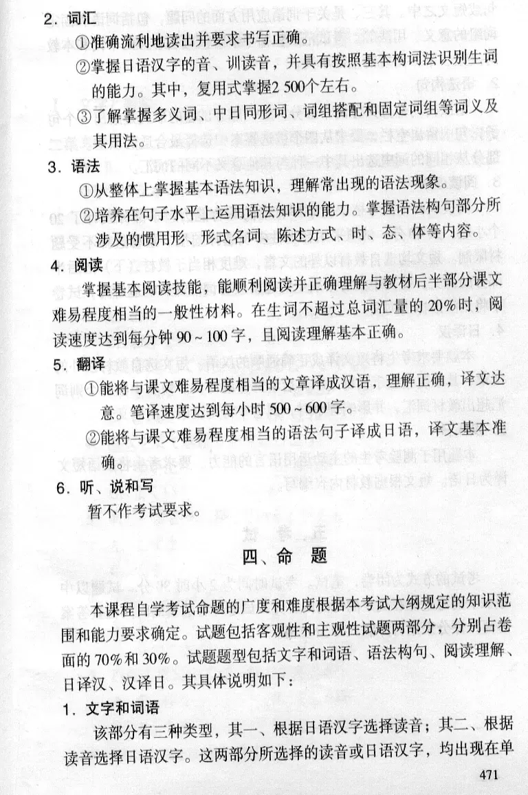天津市自考00016日语(二)考试大纲