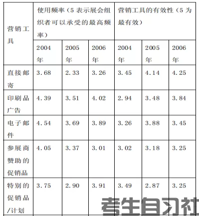 表1:2006 年美国贸易展览会的观众组织手段