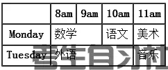 1.现有一个Web应用程序,需要在页面上显示一个课表,如图所示。请用HTML语言将课表在页面上显示出来。