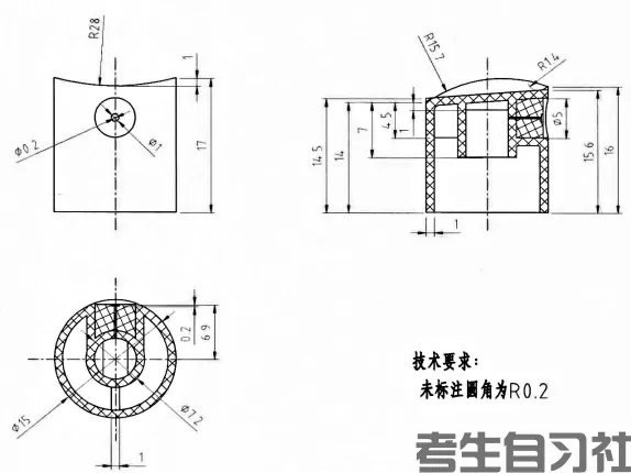 3. 该零件顶部圆弧面直径为_________。