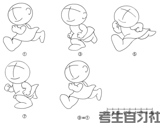4. 绘制的人物奔跑动作中间画姿态要正确,动作表现要流畅,符合人物奔跑运动规律。