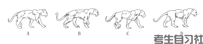 运用FLASH、PS或TVP等二维动画绘制软件,采用单线勾勒方式,参考ABCD四个关键姿态,绘制一组四足动物行走的原动画,并使之成为一组循环动作。自行设计角色颜色搭配,根据色彩应用原理,用颜色变化体现角色因行走而产生的光影变化,以及体积感与空间感。最后为这组四足动物行走动作设计景别合适的彩色背景,背景颜色与造型设计要与角色协调,有一定体积感与空间感。并附以文字,说明原动画张数、中间画距离与动作速度的关系。文字说明部分附加在循环动作之后。