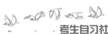 3.绘制的飞鸟飞行动作中间画姿态要正确,动作表现要流畅,符合飞行运动规律。