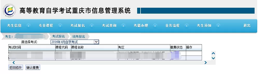 9.返回自考系统,查看支付结果。