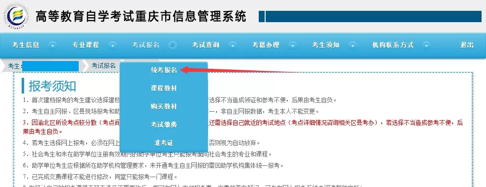 2.考生自主网报、区县现场报考和助学机构集体报考,三者只能选择其一,非自主网报数据,考生本人不能变更。