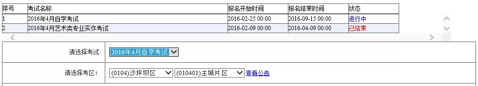 12.报考过程按照从上到下依次操作,即选择考试-->选择考区-->选择课程。