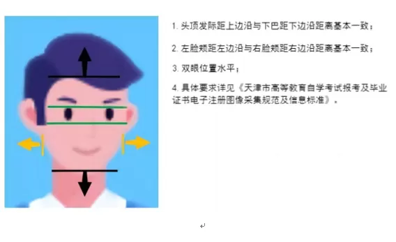 五、身份认证 1. 报名照片(近期免冠照) (1)近期免冠浅蓝色(参考值RGB<100,197,255>)底彩照,JPG格式,示例见下图: ![]() (2)照片大小为20—40KB,分辨率300dpi,照片高度为640像素,宽度为480像素。 ![]() (3)身份认证上传的证件照作为考生存档照片,将用于准考证打印及其他各项业务办理,须符合《天津市高等教育自学考试报考及毕业证书电子注册图像采集规范及信息标准》(附件1),不符合要求的照片将不能通过认证。 ![]() 2. 本人身份证照片 (人像面) (1)身份证字体清晰, 四个圆角完整,大小为 20—80KB。 (2)图片禁止拉伸或变形, 图片拉伸或变形,可能认证失败。 3. 注意事项 (1)为确保考试公平,考籍管理区仅负责考生的报考及考籍管理有关事项,不确定为参加考试的考点所在区。参加考试时的考区与考点由计算机系统随机编排确定,若考生报考多个专业,则考试地点可能涉及多个考区。 (2)考生须如实填报各项基本信息,请确保手机号码、通讯地址等信息准确无误,身份证号、姓名、性别等关键信息如有错误,考生个人不能修改,须联系考籍所属考区提出申请并进行现场确认。 (3)护理学、眼视光学、中药学、飞行器动力工程、交通运输专业新生注册需审核报名资格,详情请咨询有关主考院校。 ![]() (4)报考期间请考生注意关注短信信息,并按短信内提示完成有关操作。 (5)交费前,考生须认真核对本人信息及报考课程等是否正确,报考课程一经确认且网上交费成功后,因考生个人原因不能参加考试的,已进行网上支付的报名考务费不予退还。 (6)根据天津市发展和改革委员会、财政局(津发改价管﹝2024﹞16号)文件规定,高等教育自学考试报名考务费收费标准为每生每科50元。 六、非笔试课程和毕业环节报考 报考非笔试课程和毕业环节的考生,报考后须在2025年1月16日至17日电话联系主考院校进行报到。报到联系方式详见《2025年上半年天津市高等教育自学考试非笔试课程和毕业环节主考院校联系报到一览表》(附件2),请考生不要错过报到时间,以免延误考试。 申请学位的考生,请于毕业申请前主动联系本专业主考院校,了解该专业的学位授予标准及要求。 七、考试时间 2025年上半年全国高等教育自学考试时间为4月12日至13日。 八、考试信息查询方式与《准考证》打印 为确保考试公平,考籍管理区仅负责管理考生的考籍有关事项,参加考试时的考区与考点由计算机系统随机编排确定。考试前一周,报名考生可登录“招考资讯网”(www.zhaokao.net)—“天津市高等教育自学考试考生服务平台”查询考试信息(笔试考试时间、考试地点、考场及座位等)并下载打印准考证。